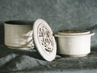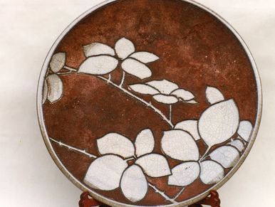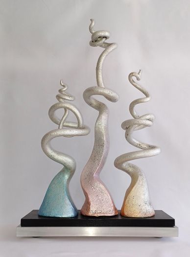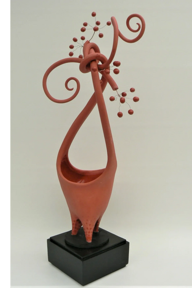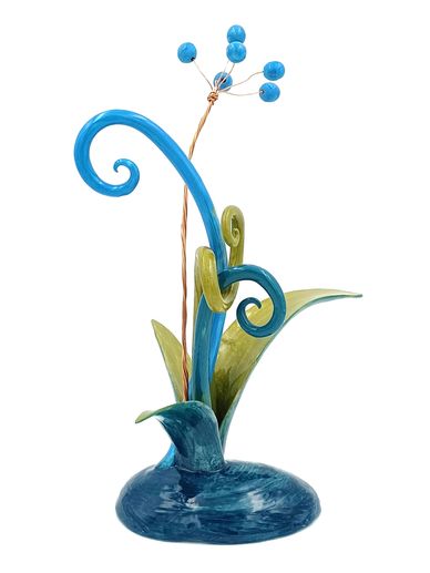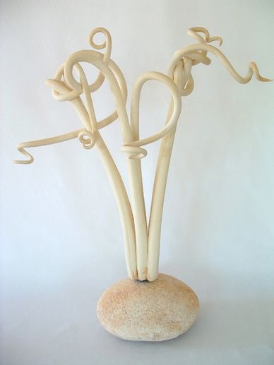 Earliest Tendrils were incorporated on Raku ware as shown here. Contrasting the strength and delicacies of clay. More recent work showcases the Tendril on its own as seen below.